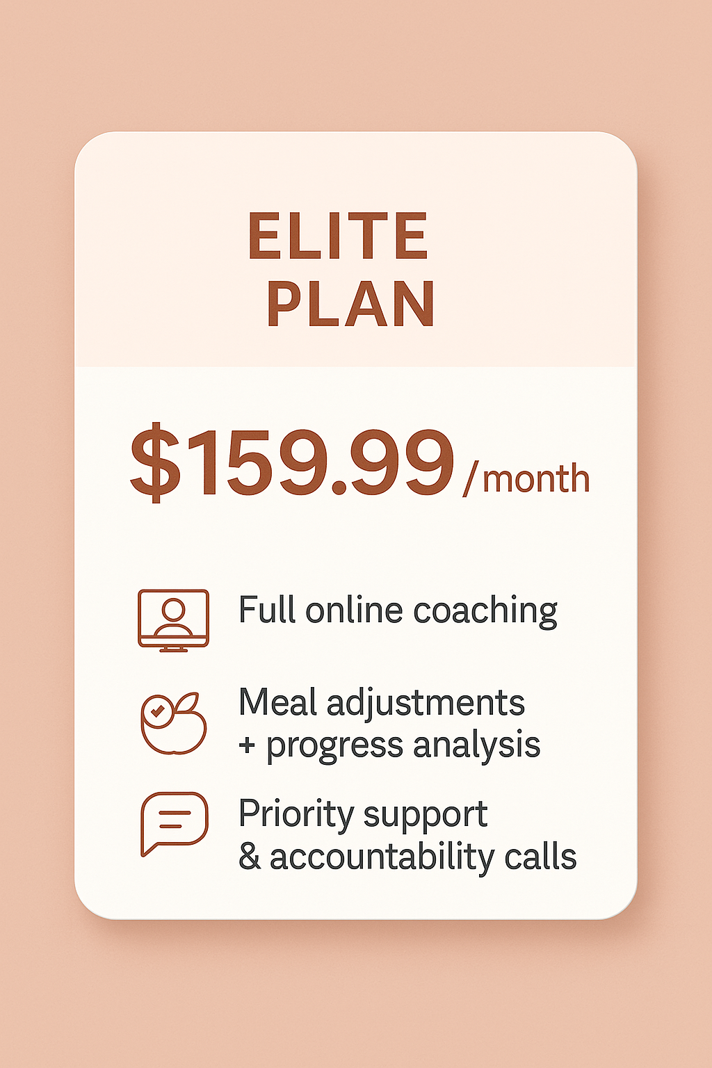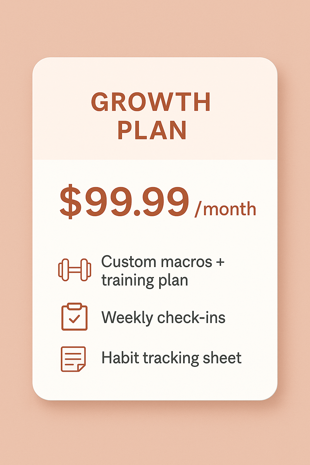 Book a one-on-one consultation to create your personalized fitness and nutrition plan. We’ll assess your goals, current habits, and design a strategy that fits your lifestyle. Start building the structure, accountability, and results you’ve been looking for.